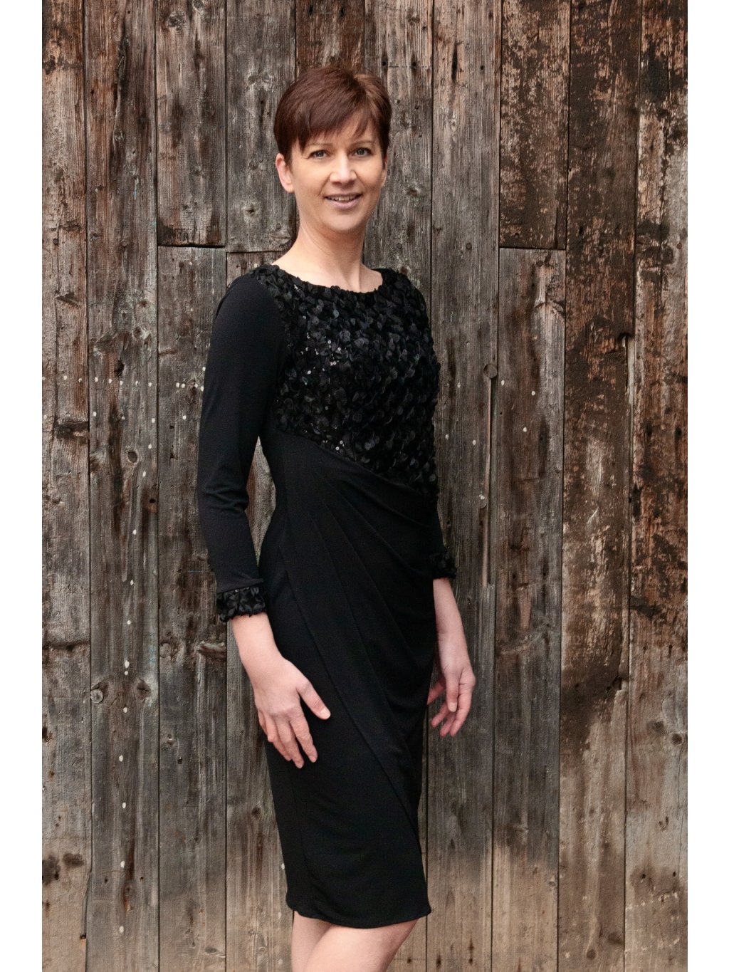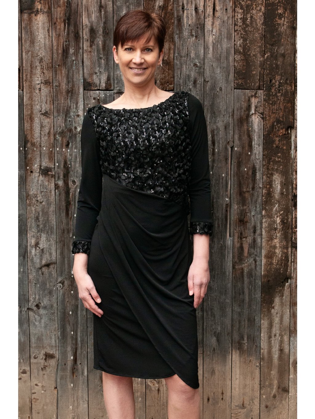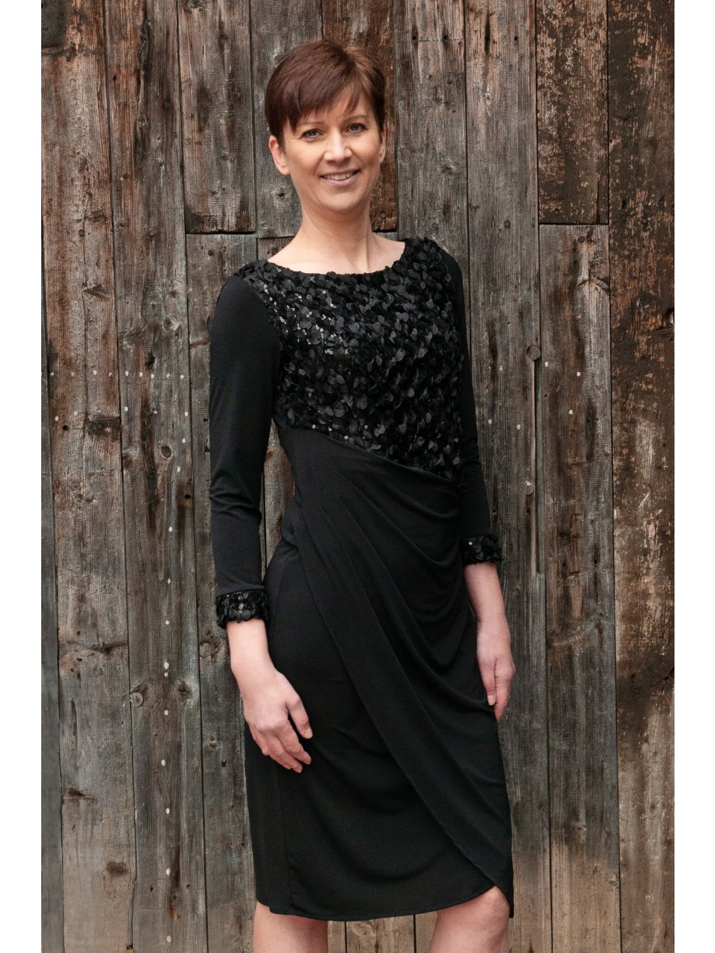 Strategicky umístěné řasení na boku není jen estetickým prvkem - jeho funkce je mnohem důležitější. Lichotivě tvaruje postavu, opticky zeštíhluje pas a vytváří elegantní siluetu. Krajkové manžety na rukávech pak dodávají celému modelu nádech luxusu a jedinečnosti, který zaujme na první pohled.