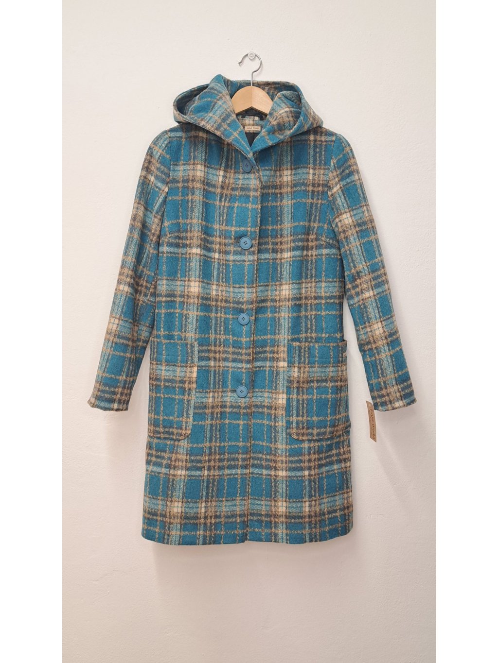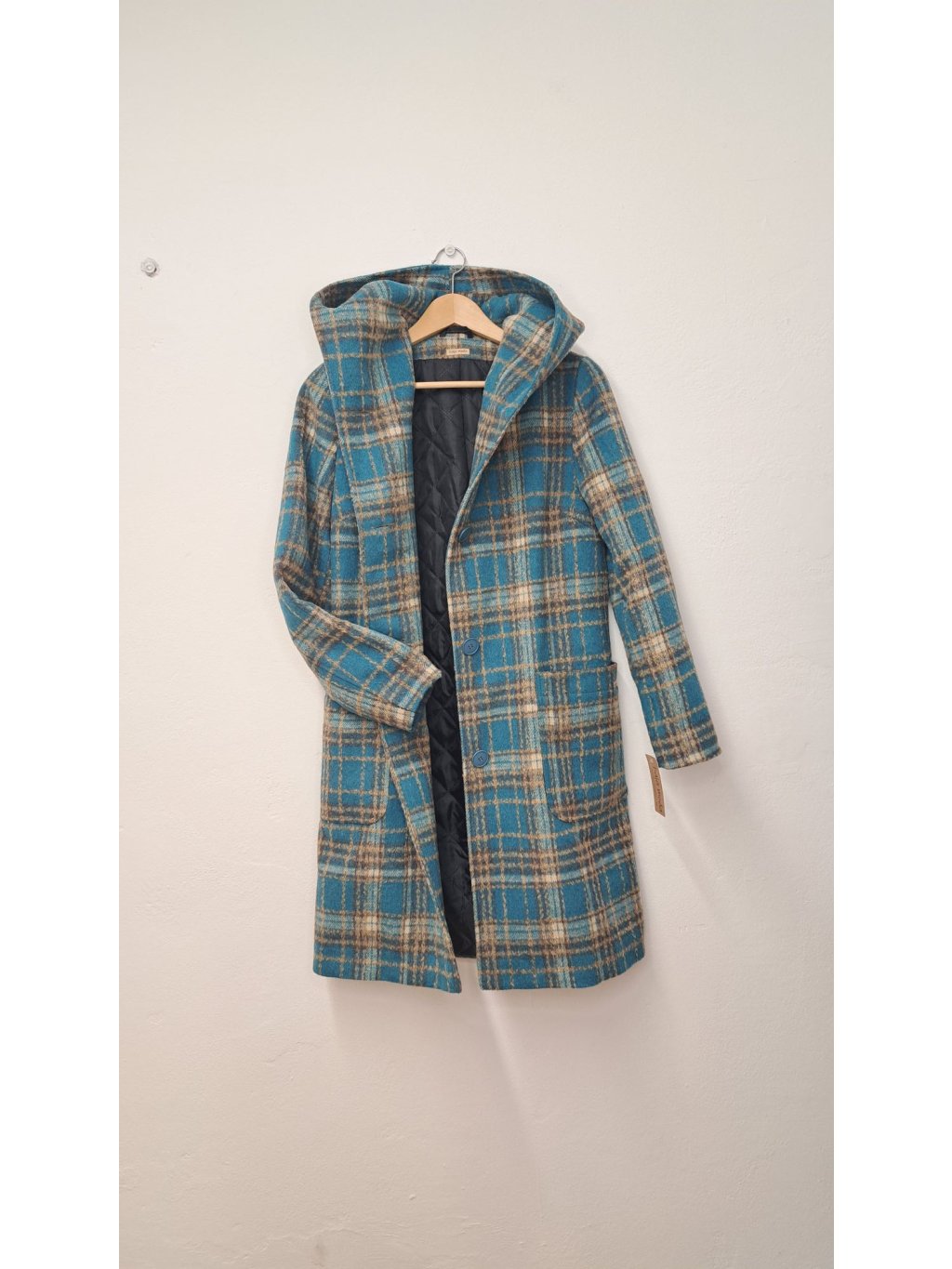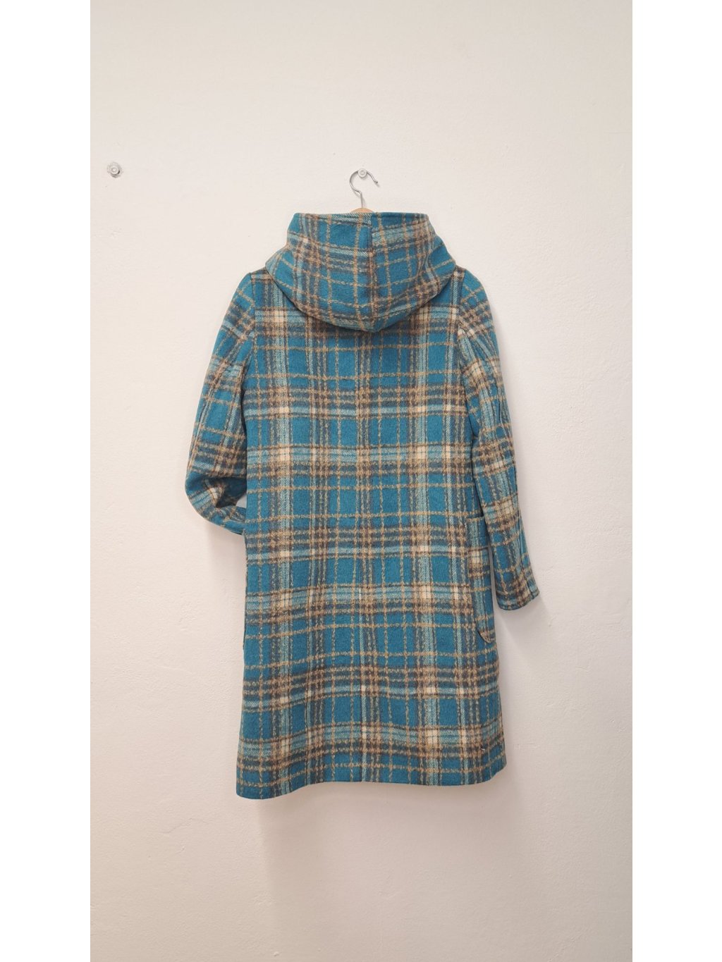Kostkovaný kabát PAVLA s kapucí - elegantní a praktický společník pro chladnější dny. Moderní oversize střih s fazonkou a funkční kapucí, ideální pro vrstvení a ochranu před nepohodou. K dispozici v tyrkysové, červené a okrové variantě.