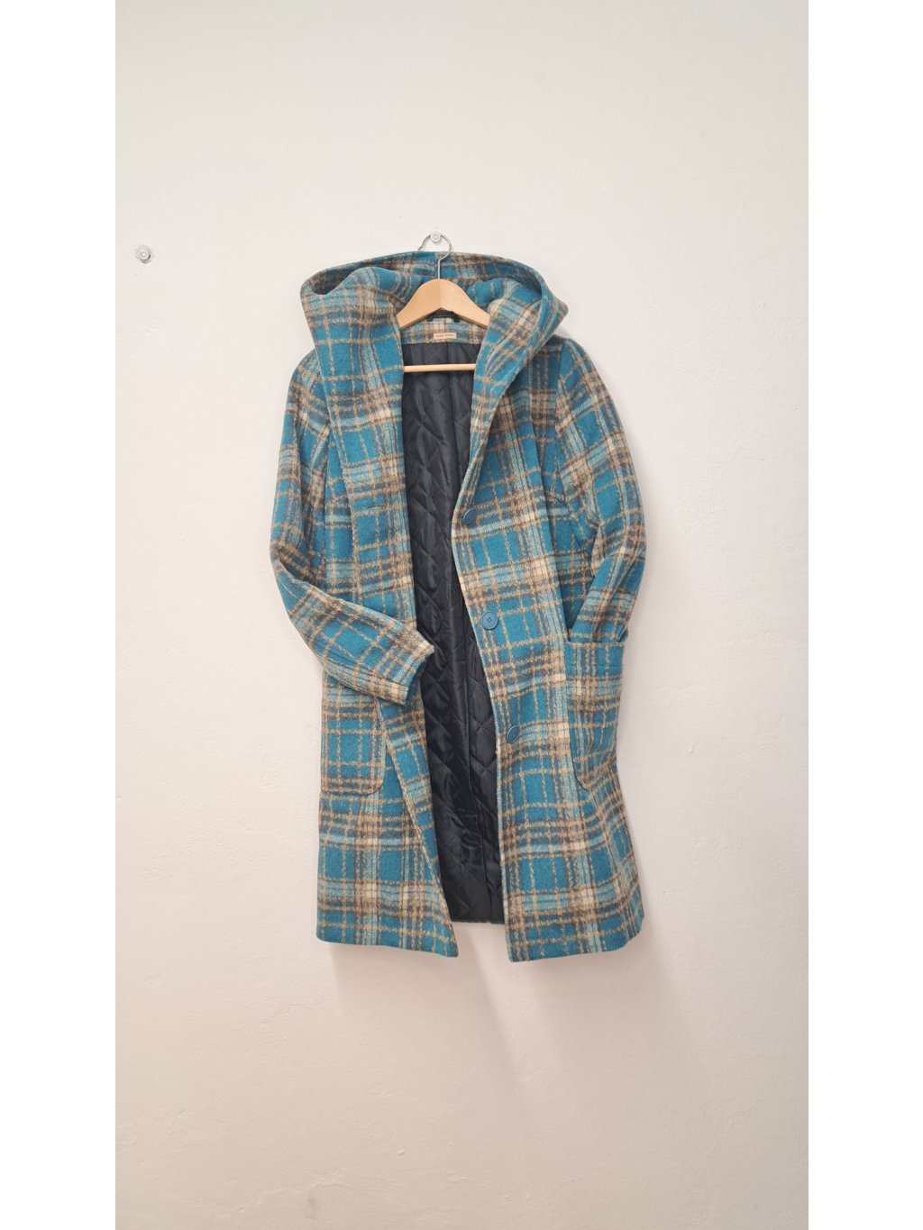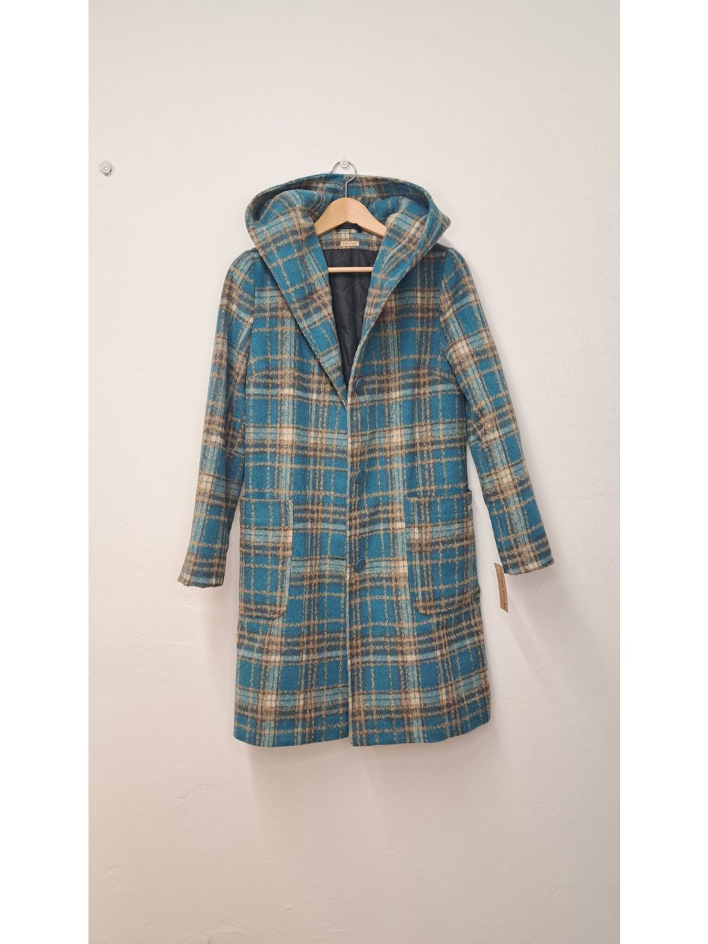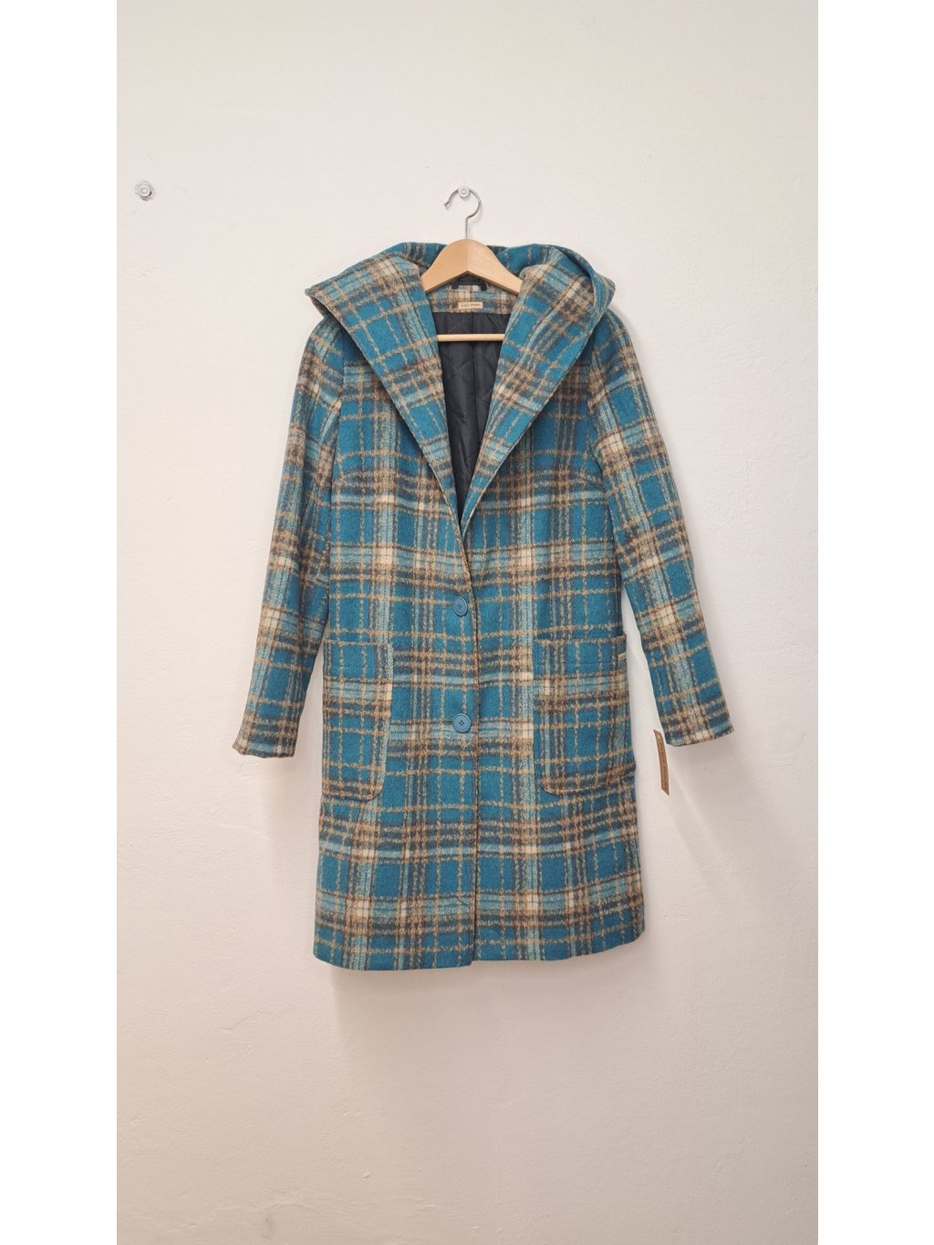 Kostkovaný kabát PAVLA s kapucí - elegantní a praktický společník pro chladnější dny. Moderní oversize střih s fazonkou a funkční kapucí, ideální pro vrstvení a ochranu před nepohodou. K dispozici v tyrkysové, červené a okrové variantě.